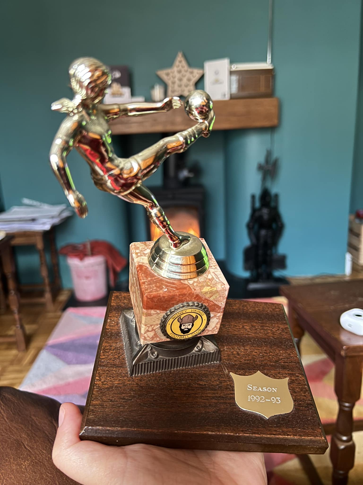 Lastly, here is something we found behind the old fridges in the container at Burwell, apparently a relic from the Chairman’s playing days: